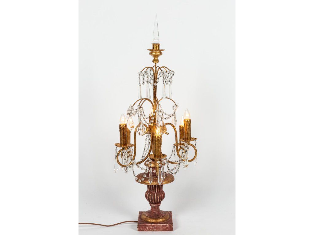 Celá konstrukce je propletena řetězy drobných broušených korálků a osazena elegantními skleněnými ověsy, které při rozsvícení vytvářejí v místnosti okouzlující světelnou hru. Vrchol svítidla tvoří štíhlý skleněný hrot, který podtrhuje vertikální eleganci celého kusu. Je to ideální volba pro milovníky historizujícího stylu, kteří hledají dominantní prvek na velký jídelní stůl, klavír nebo do reprezentativního salonu.