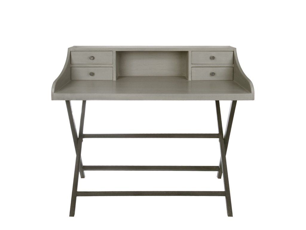 Stůl je vybaven čtyřmi praktickými zásuvkami (šuplíky) a prostornou pracovní deskou, která vám poskytne dokonalý přehled při třídění korespondence, psaní nebo práci na notebooku. Kombinace masivního mangového dřeva a subtilních železných nohou dodává stolku lehkost a moderní nádech.