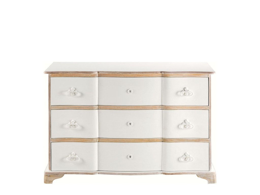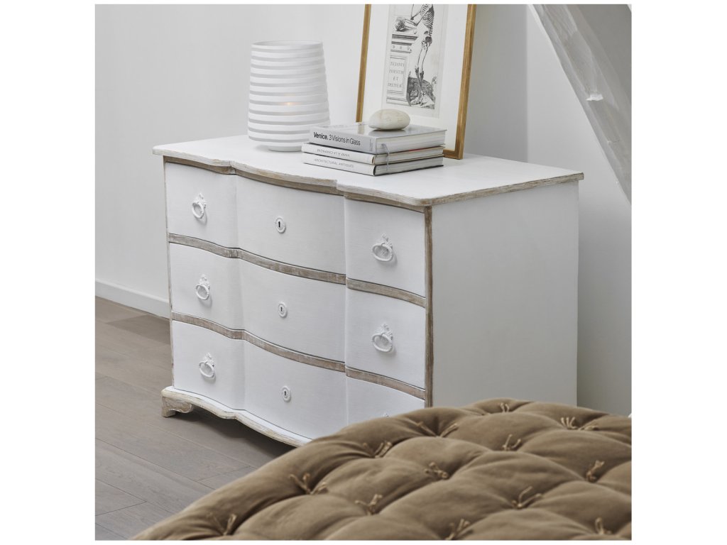 Elegance, která definuje prostor. Tato komoda je dokonalým spojením praktického úložného prostoru a rafinovaného designu. Díky třem prostorným zásuvkám nabízí dostatek místa pro vše potřebné, zatímco její elegantní křivky a unikátní styl z ní činí nepřehlédnutelný prvek i v těch nejluxusnějších interiérech.