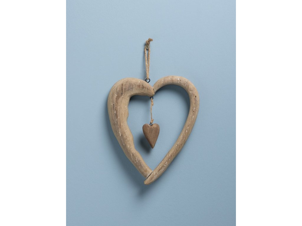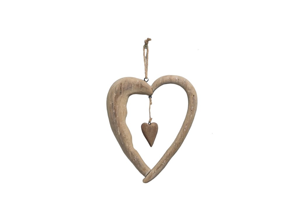 Dřevěná ozdoba ve tvaru srdce s menším srdcem ve sředu na provázku